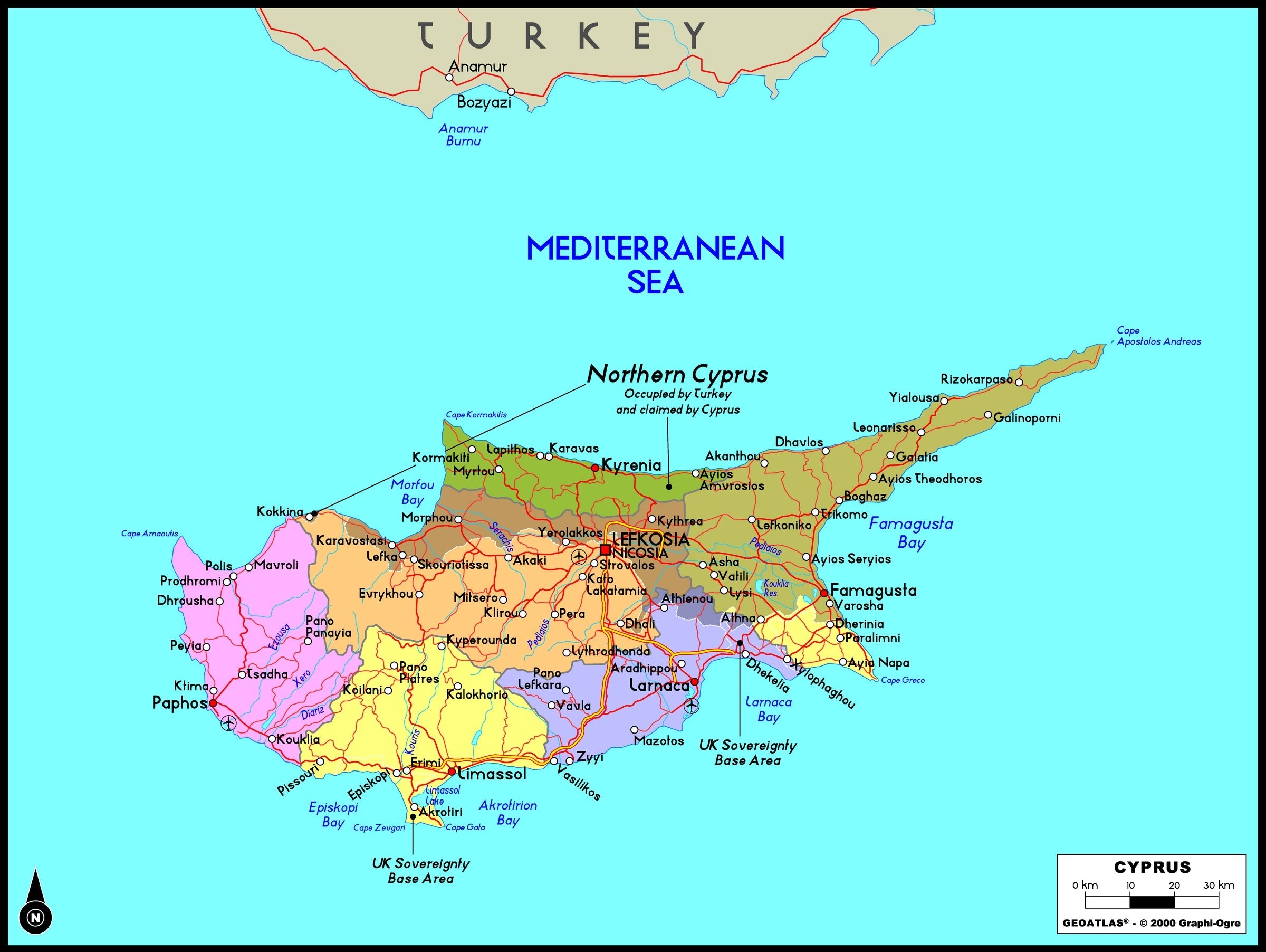 This Cyprus Political Wall Map is ideally suited for light reference. As a part of this Atlas-style map series, the Cyprus Wall Map includes portions of adjacent areas, bringing an almost regional map feel to a country map presentation.