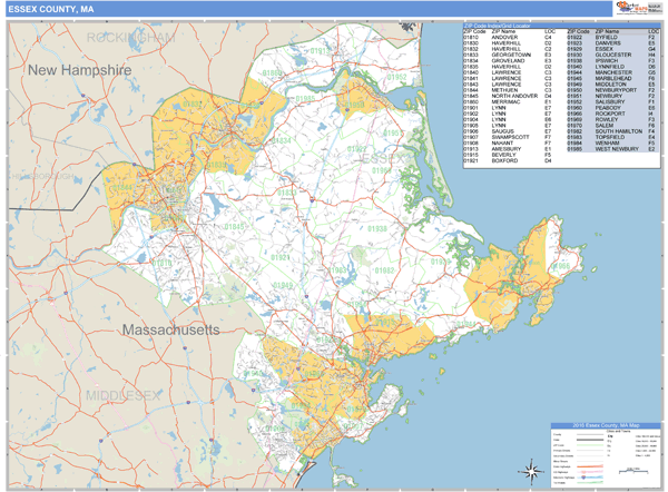 Essex County, Massachusetts Zip Code Wall Map was created specifically with businesses in mind and offers only that data that is essential for business functions and decision making, tracking sales territories, and for general reference.