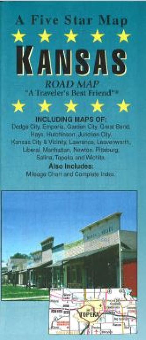 Folded color road map of Kansas, including maps of Dodge City, Emporia, Garden City, Great Bend, Hays, Hutchinson, Junction City, Kansas City & vicinity, Lawrence, Leavenworth, Liberal, Manhattan, Newton, Pittsburg, Salina, Topeka and Wichita. Also includes mileage chart and complete index.