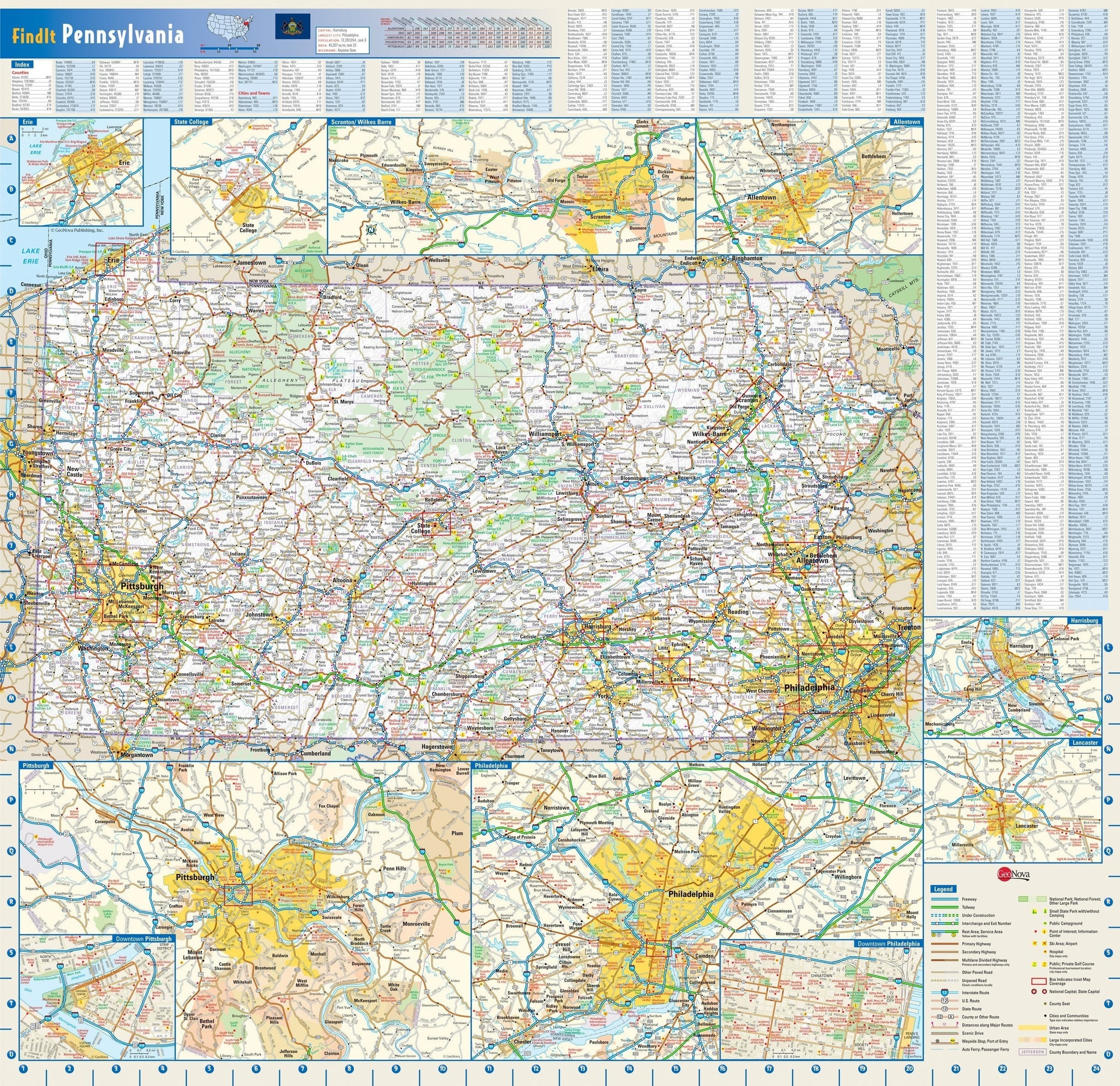 Detail included on this state of Pennsylvania Wall Map: