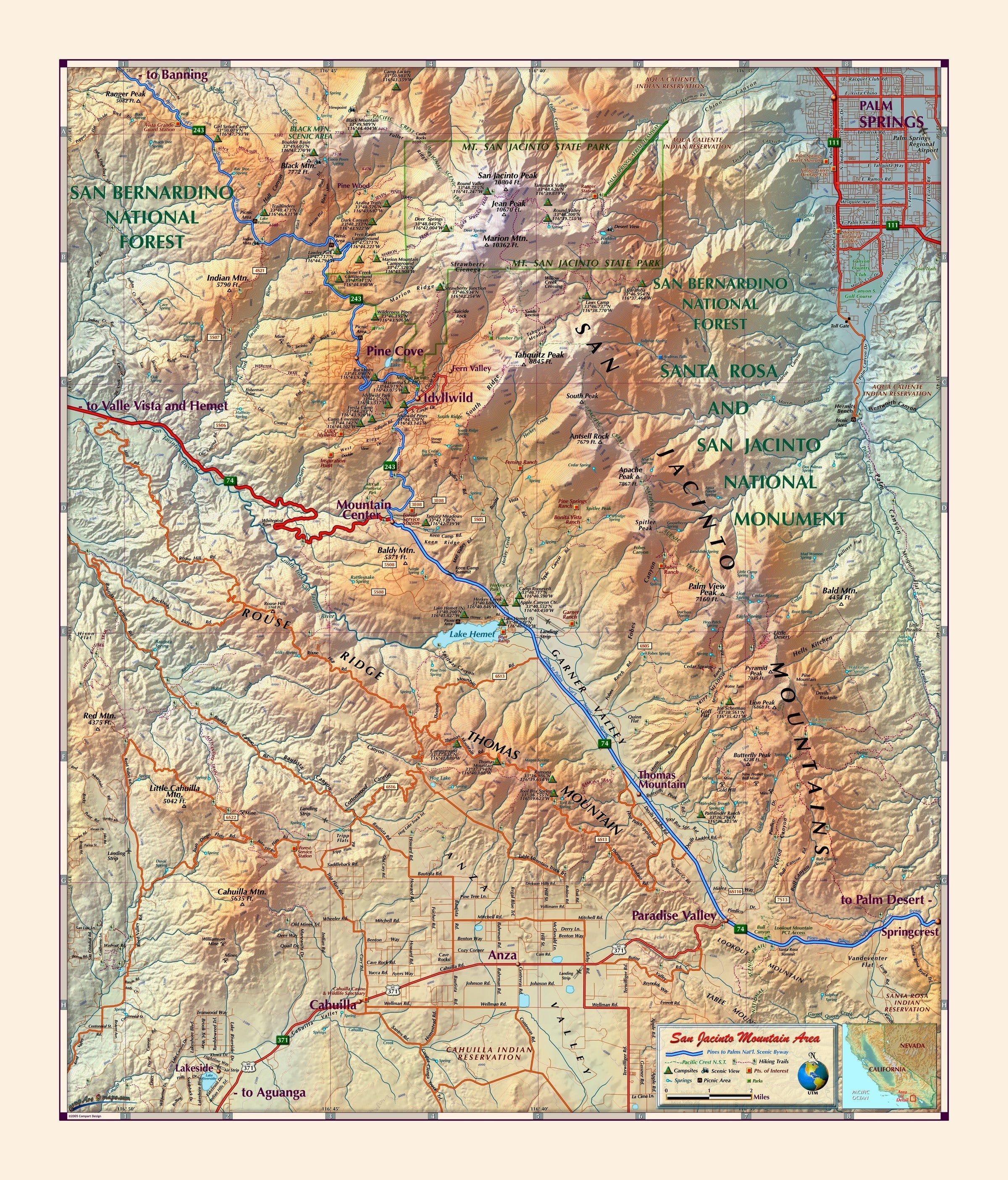 This San Jacinto Mountains Wall Map features: