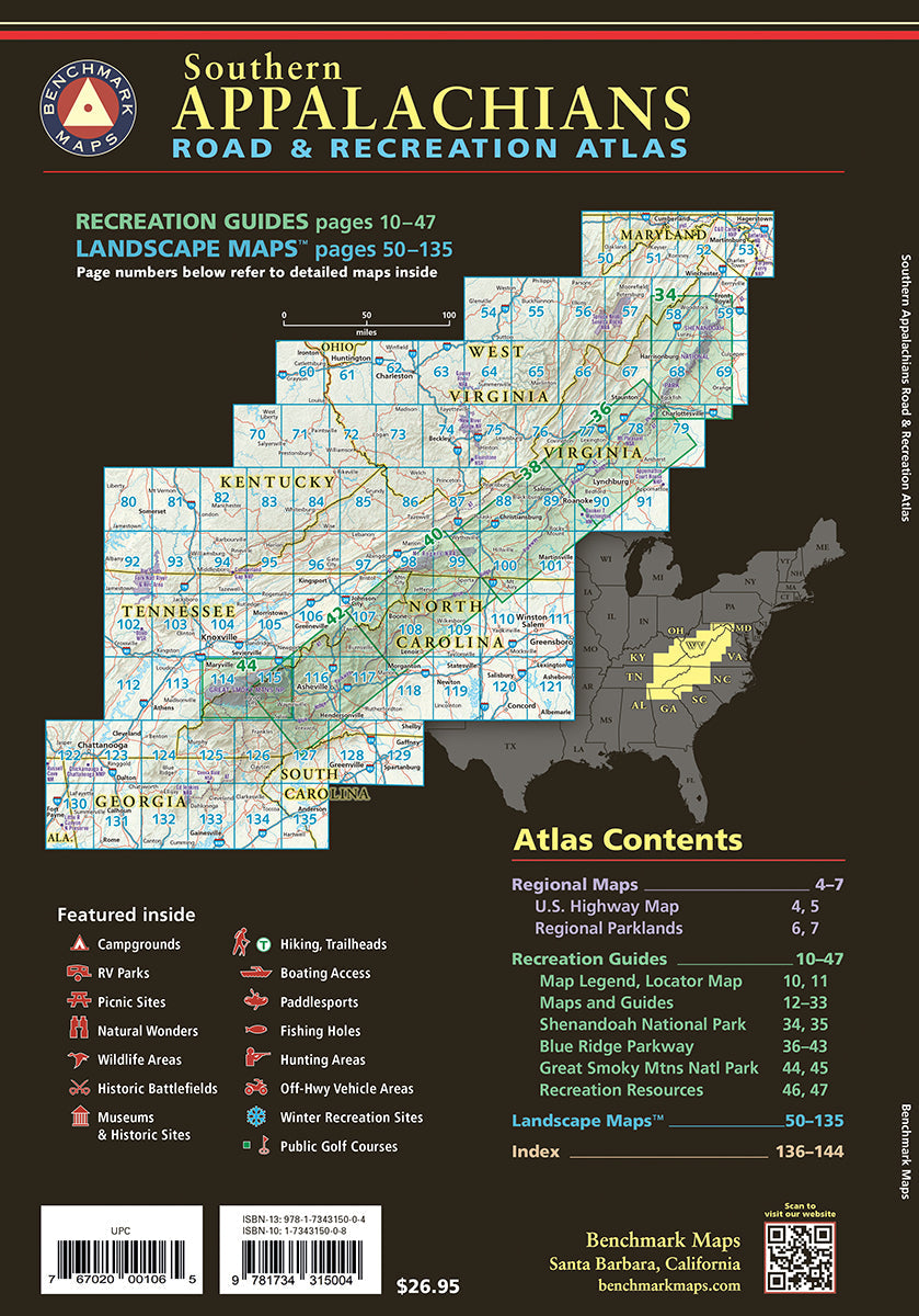 Our award winning series of Road Recreation Atlases, with thoroughly researched recreation guides and field checked Landscape Maps TM, have become the go to map product for state road travel and exploration. We brought our focused approach to the wealth of terrain and public lands spread across several states in the southeastern United States. Let our Southern Appalachians Road Recreation Atlas help you plan and execute your next adventure in America’s historic mountain frontier.