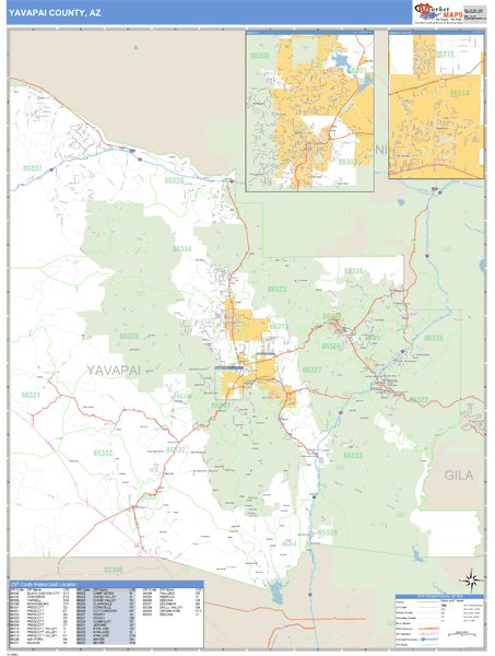 Yavapai County, Arizona Zip Code Wall Map was created specifically with businesses in mind and offers only that data that is essential for business functions and decision making, tracking sales territories, and for general reference.